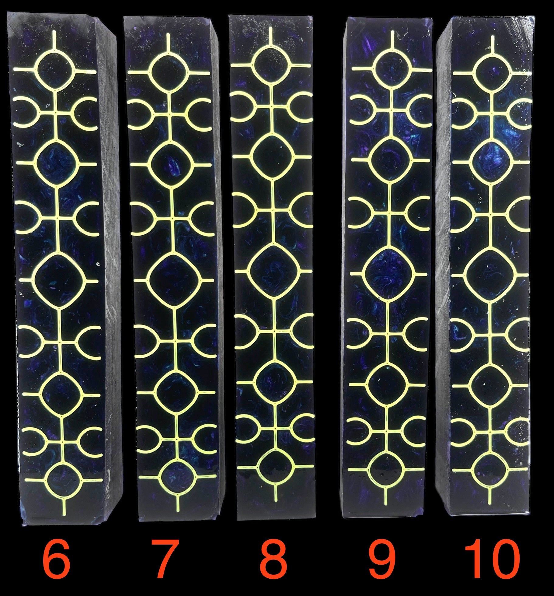 PBBrick-180: Pen Blanks - Snow Blue Red Yellow with Black 3D Printed Crop Circles Hybrid Alumilite Resin Casting Diamond Painting Pen