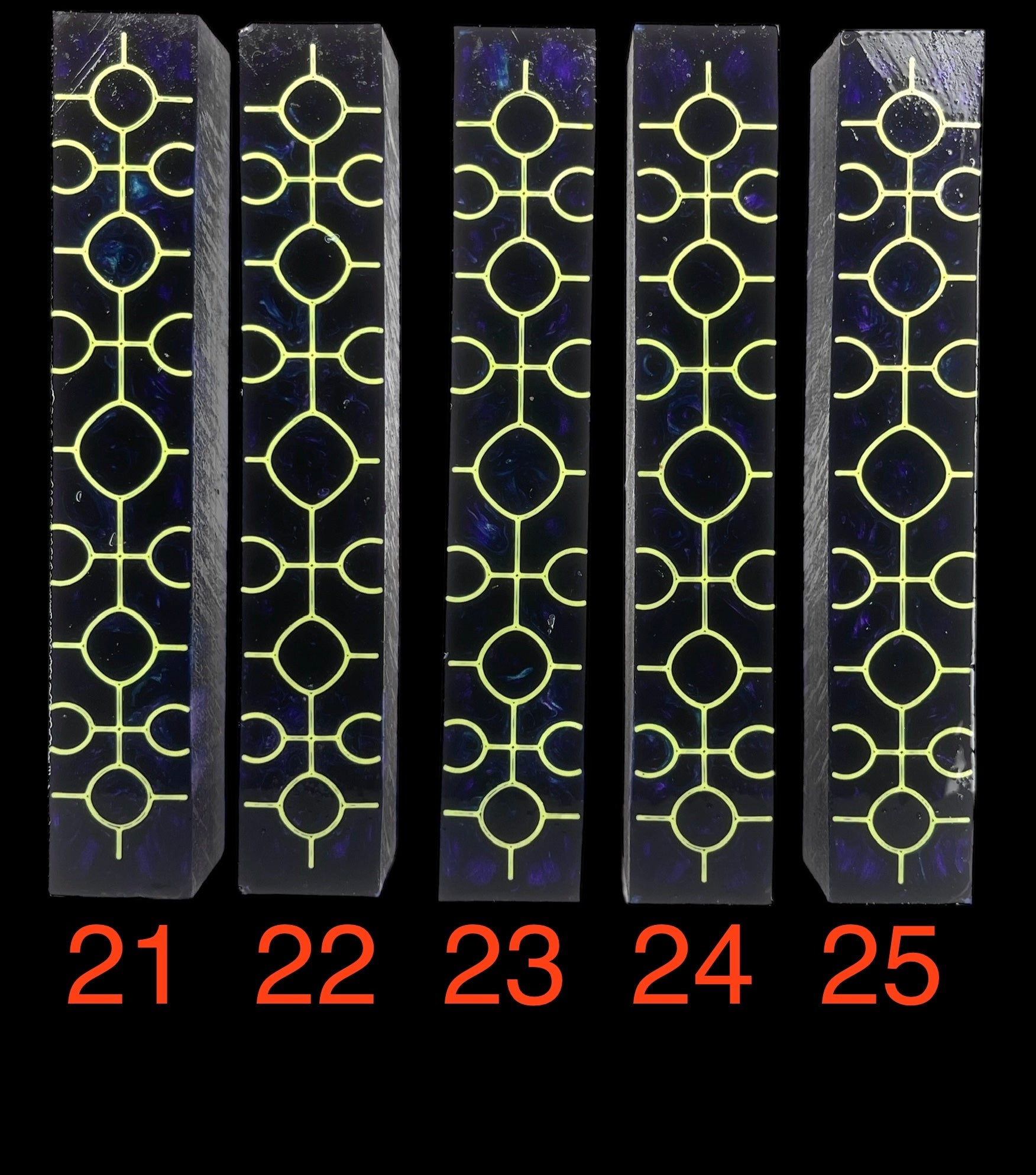 PBBrick-218: Pen Blanks - Purple with Light Green 3D Printed Crop Circles Hybrid Alumilite Resin Casting Diamond Painting Pen