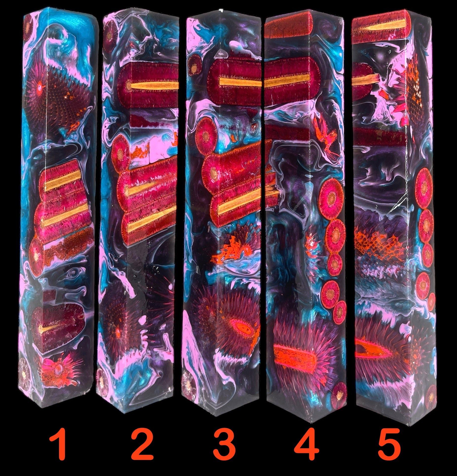 PBBrick-203: Pen Blanks - Blue Green Orange with Blue Pink 3D Printed Crop Circles Hybrid Alumilite Resin Casting Diamond Painting Pen