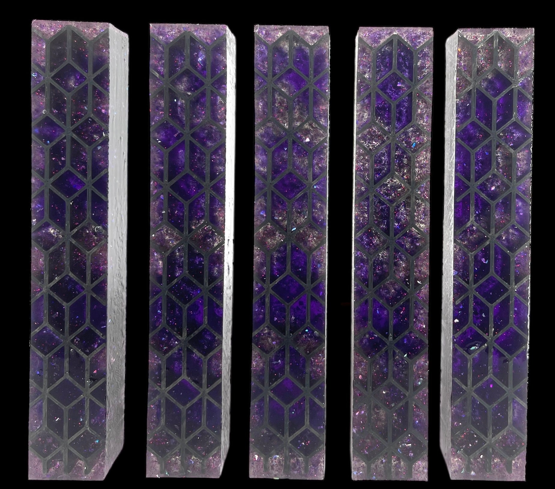PBBrick-157: Pen Blanks - Purple with Purple Glitter 3D Printed Square Hybrid Alumilite Resin Casting Diamond Painting Pen