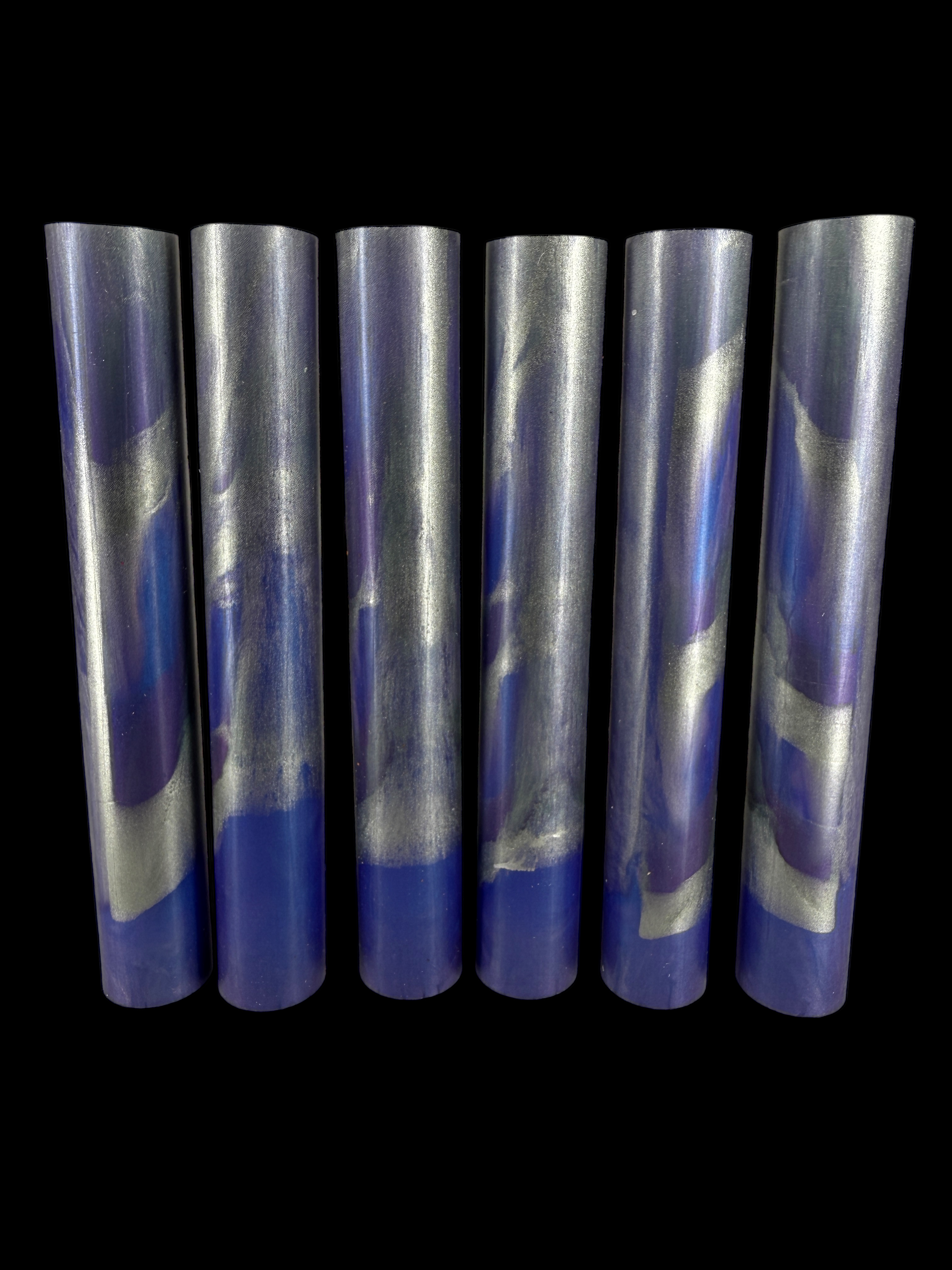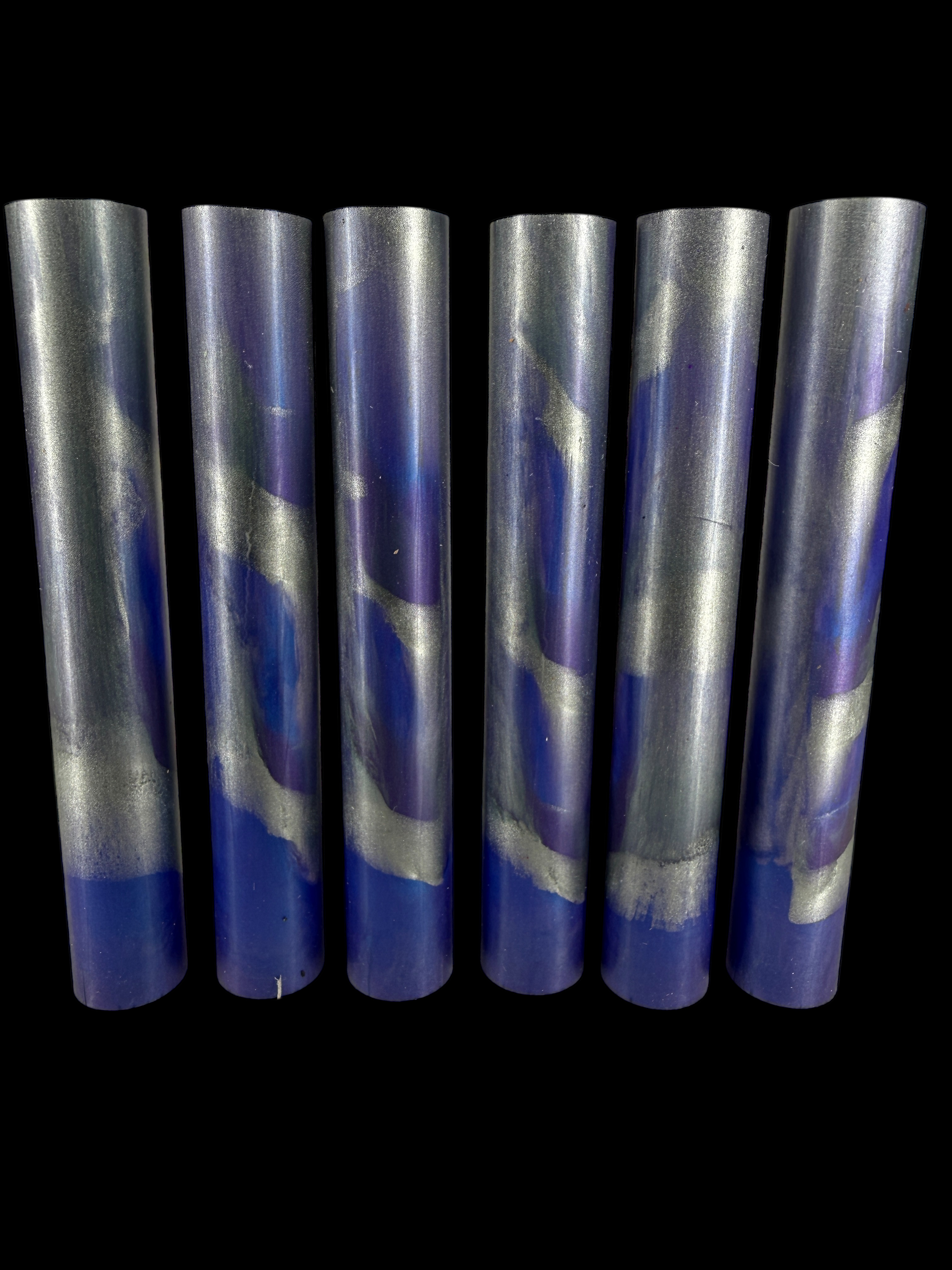 Bespoke Round Pen blank is cast with Alumilite Resin, dyes and/or mica powders making a beautiful hybrid blank. The blanks have been put under pressure to minimize bubbles. The blanks are all >= 5 3/4" x 7/8" Round.