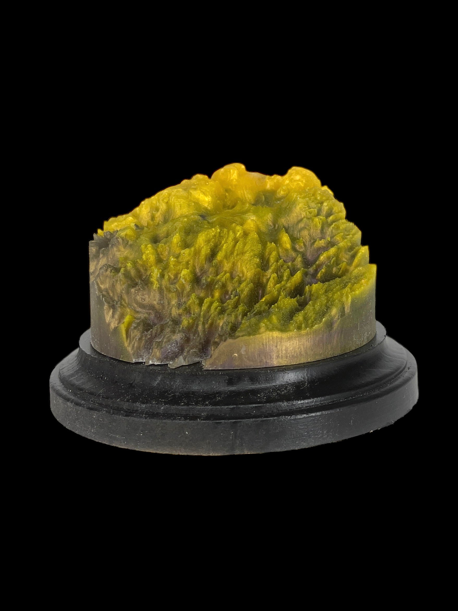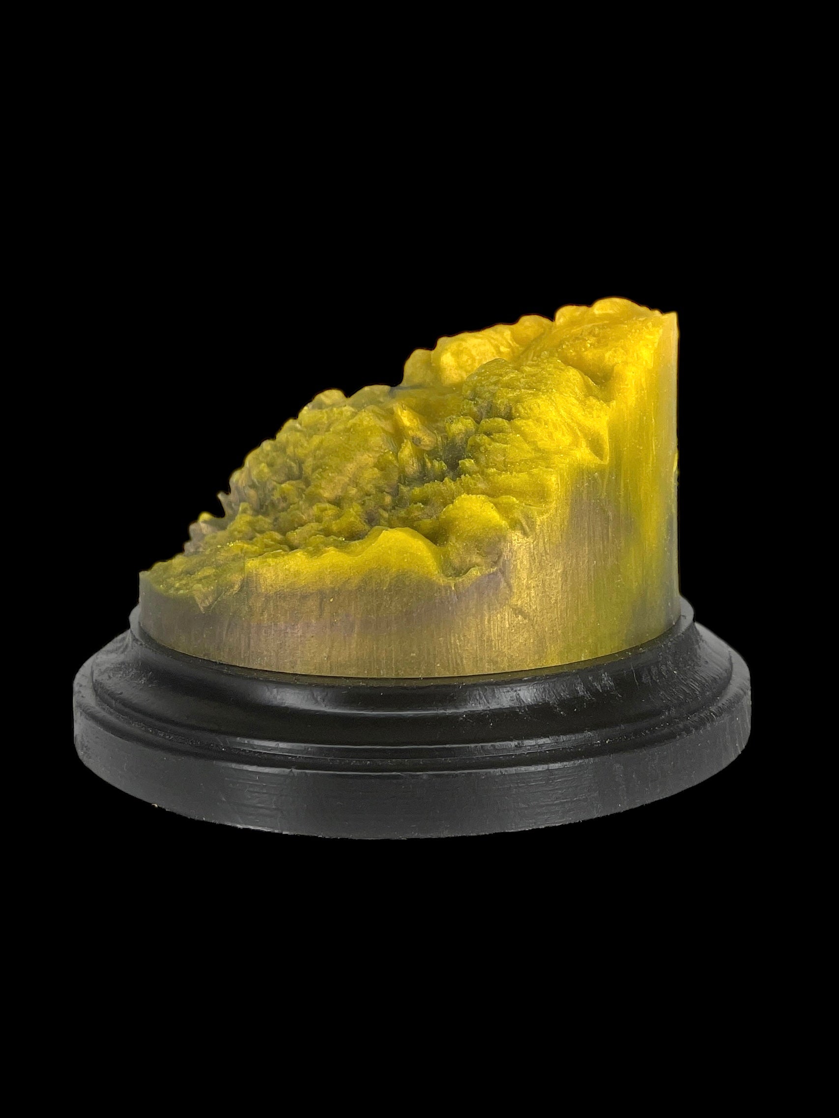 Material and Craftsmanship: Polyurethane Resin Miniature Display Plinth is Cast and then placed in a pressure pot to shrink any bubbles. The plinth is demolded and bottom sanded flat. Sides remain with a rough feel look and Elegant Profile: The plinth's design boasts a faux burl profile that complements any style of miniature. Its minimalist design ensures that it doesn't overpower your miniature artwork, allowing your creations to take center stage.