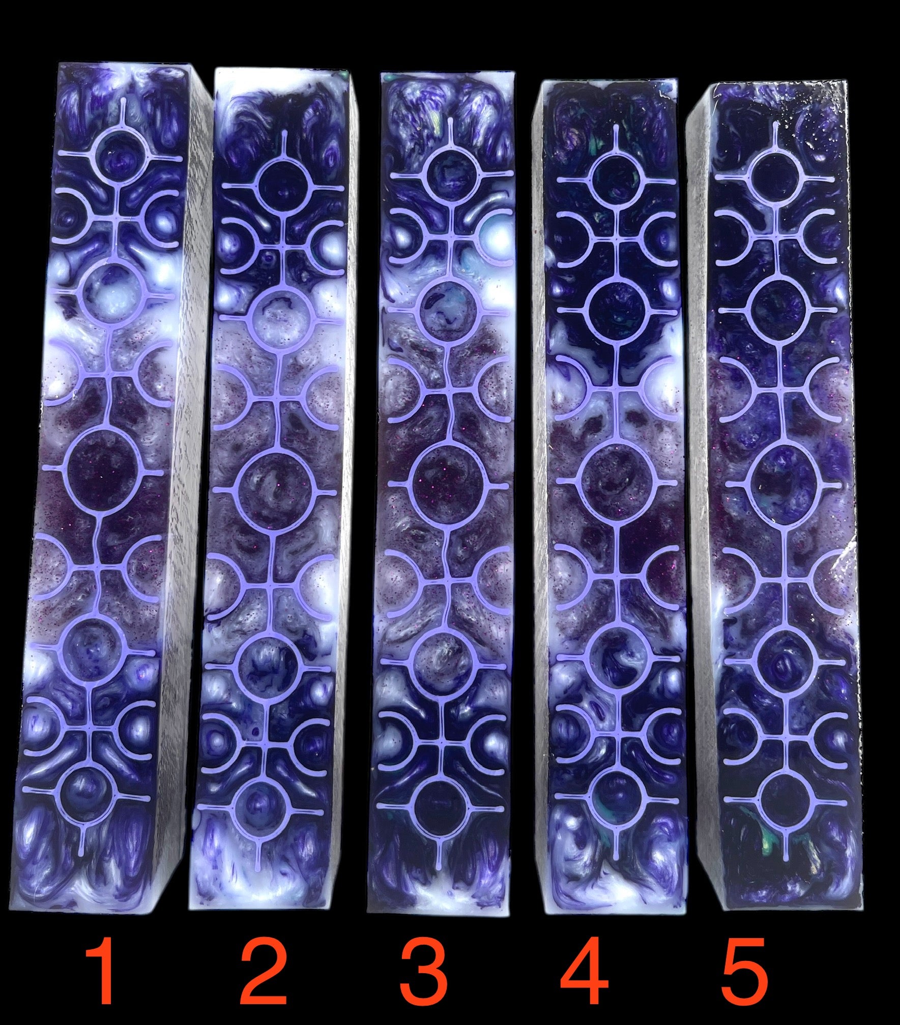 PBBrick-025: Pen Blanks - White Purple Glitter with Purple 3D Printed Crop Circles Hybrid Alumilite Resin Casting Diamond Painting Pen