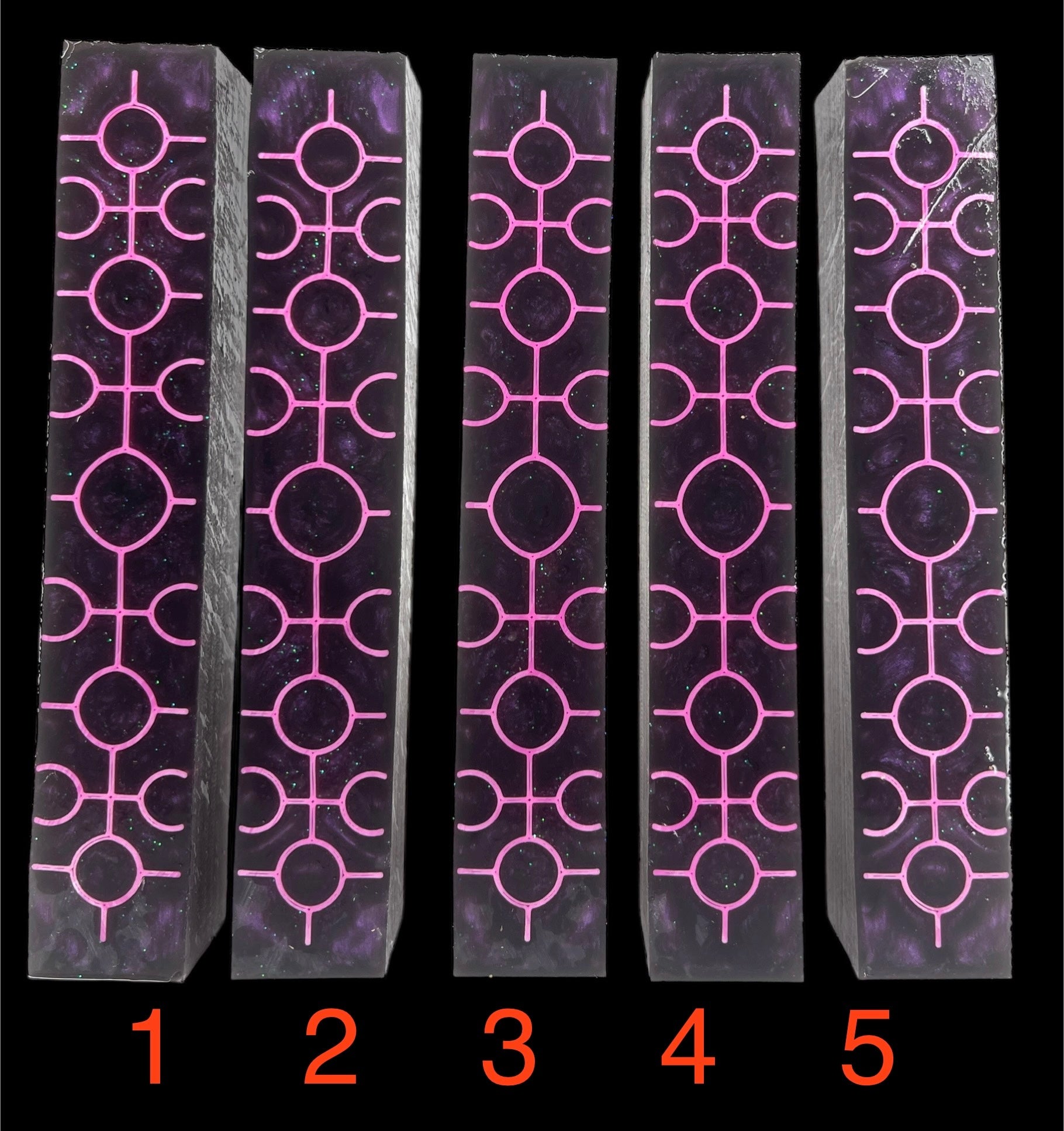 PBBrick-027: Pen Blanks - Purple Green Glitter with Pink 3D Printed Crop Circles Hybrid Alumilite Resin Casting Diamond Painting Pen