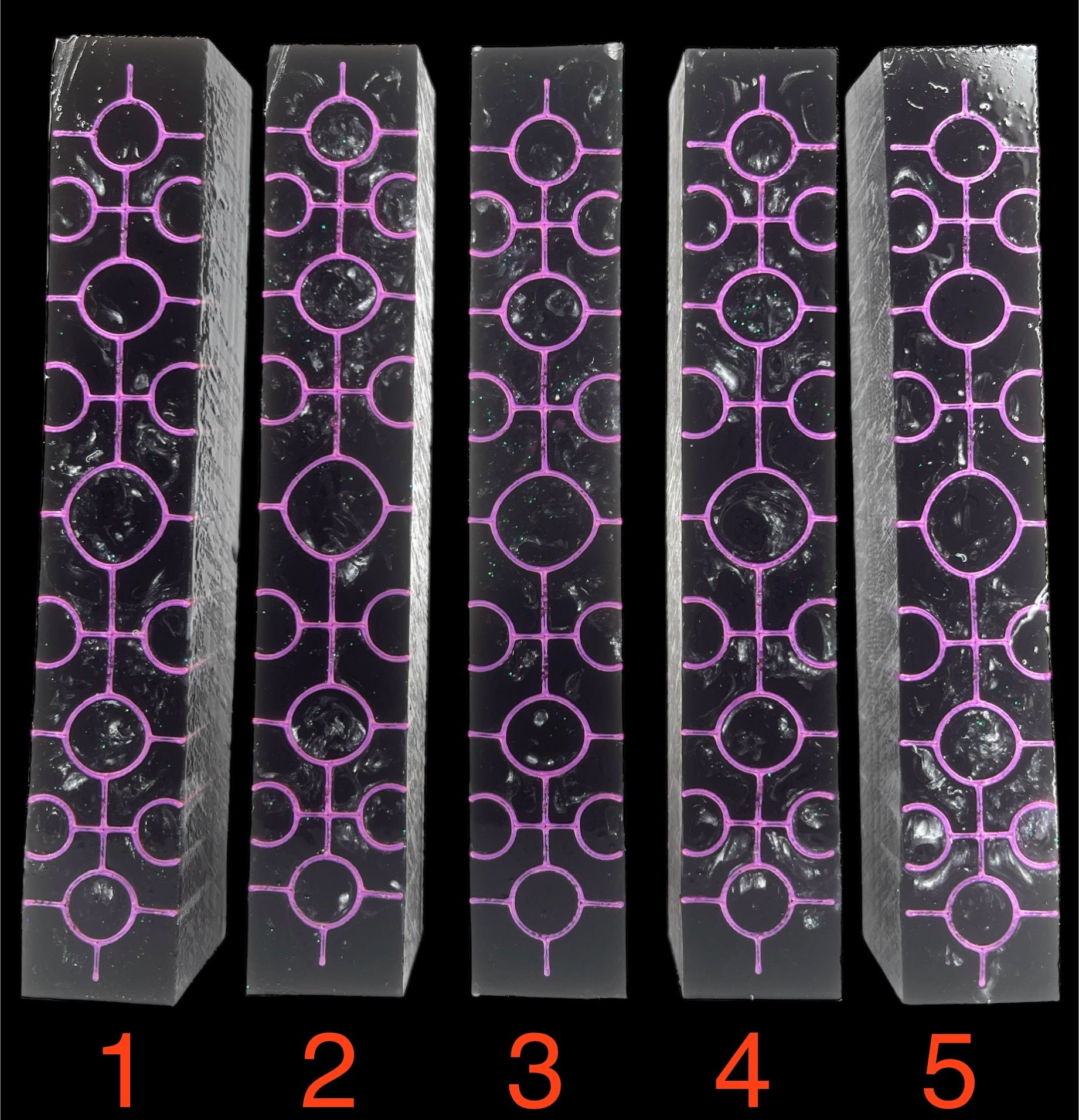 PBBrick-028: Pen Blanks - Purple Silver Green Glitter with Pink 3D Printed Crop Circles Hybrid Alumilite Resin Casting Diamond Painting Pen