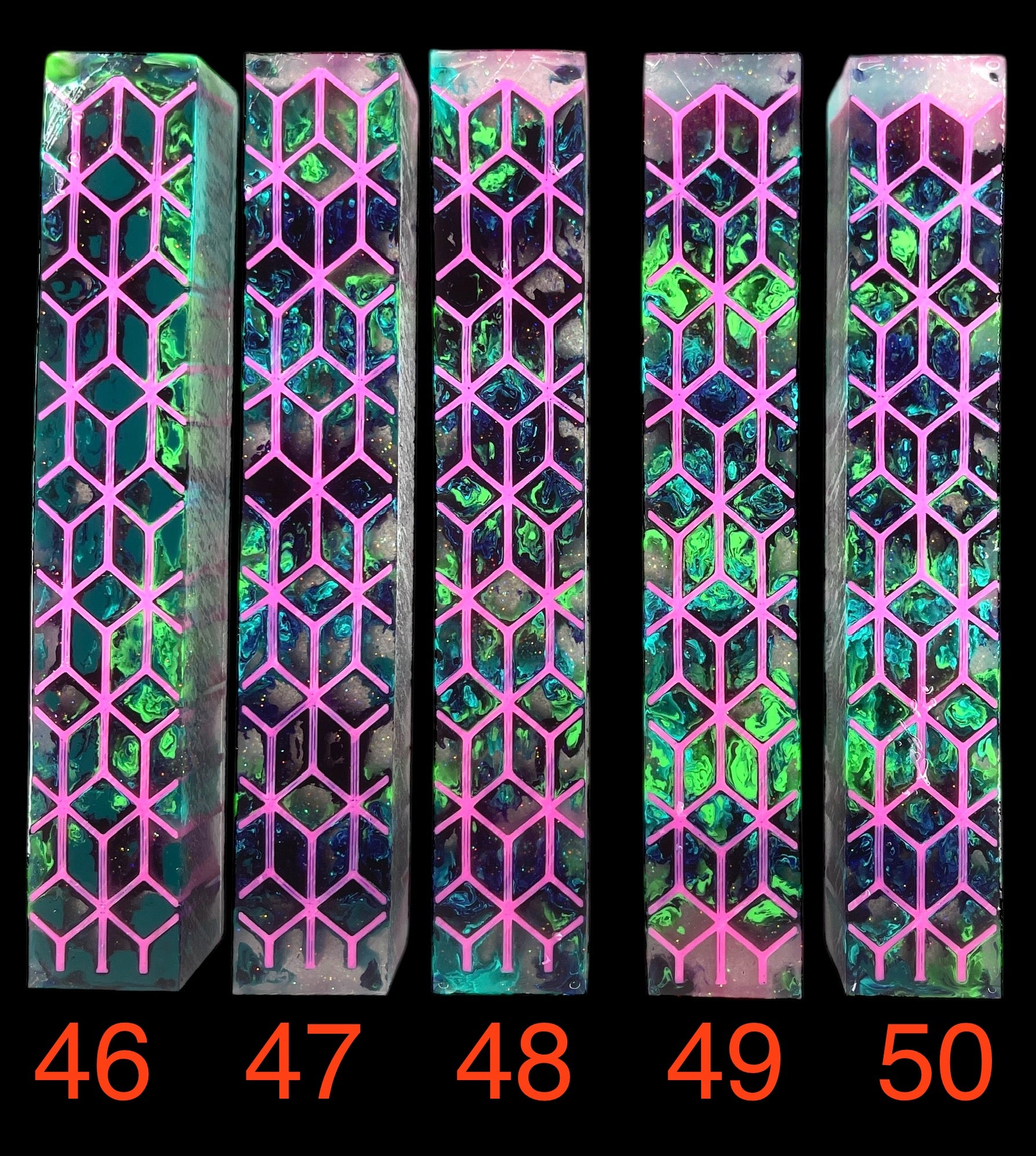 PBBrick-069: Pen Blanks - Green Teal Blue with Pink 3D Printed PLA Honeycomb Hybrid Alumilite Resin Casting Diamond Painting Pen