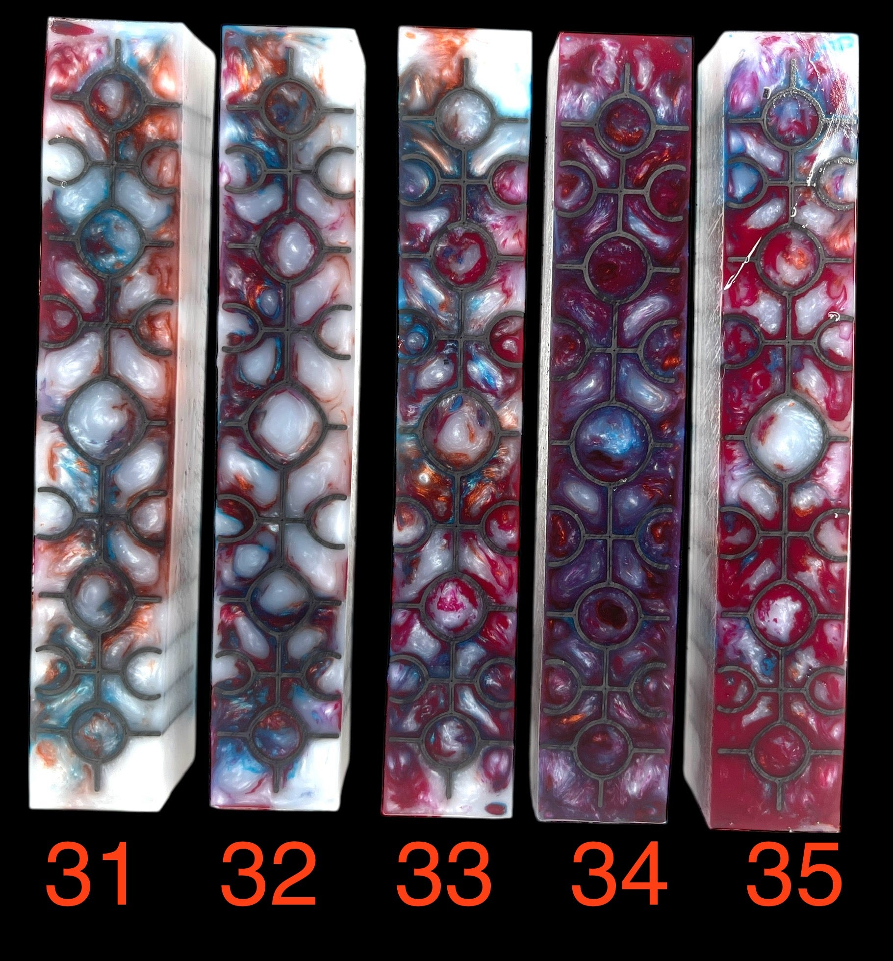 PBBrick-173: Pen Blanks - Snow Red Blue Copper with Black 3D Printed Crop Circles Hybrid Alumilite Resin Casting Diamond Painting Pen